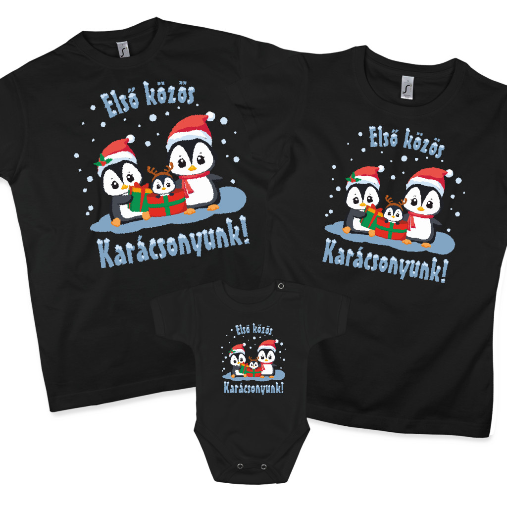 Ünnepeljétek kisbabátok első karácsonyát ezzel a megható, három cuki pingvint ábrázoló mintával! A pingvinpár és a bébipingvin az új család születését jelképezi, így ez a design tökéletes választás friss szülőknek.