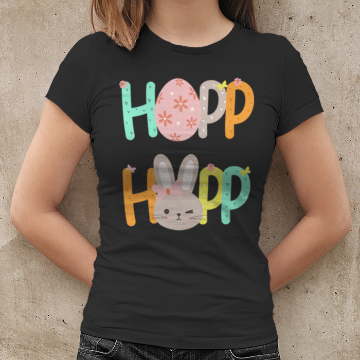 A Hopp-hopp húsvéti női póló tökéletes választás azoknak, akik vidám, tavaszi hangulatú ruhadarabot keresnek az ünnepekre. A grafika különlegessége, hogy a „Hopp-hopp” felirat „o” betűit egy húsvéti tojás és egy aranyos nyuszi fej díszíti, amely játékos és egyedi megjelenést ad a pólónak.