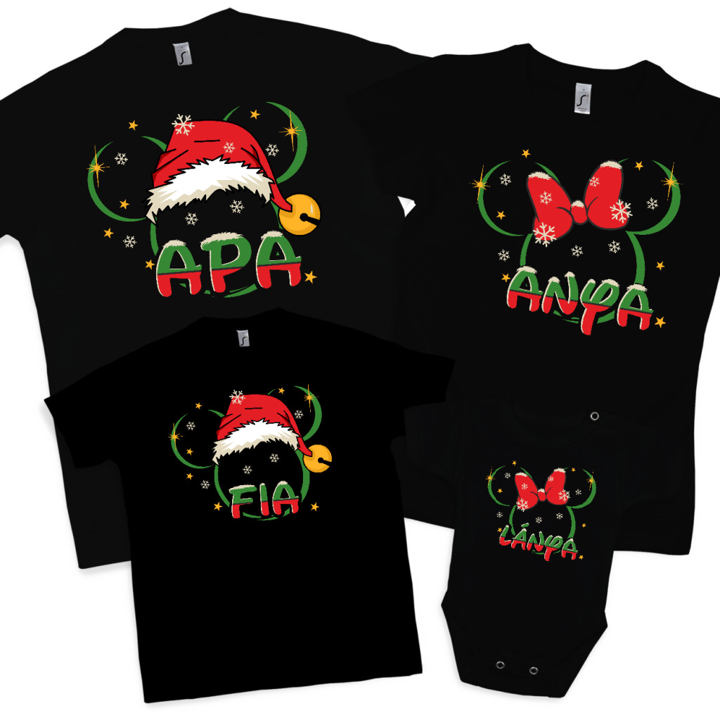 Mickey mintás karácsonyi családi póló szett – Anya • Apa • Fia • Lánya