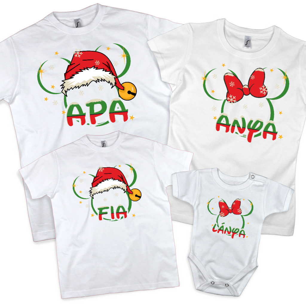 Mickey mintás karácsonyi családi póló szett – Anya • Apa • Fia • Lánya